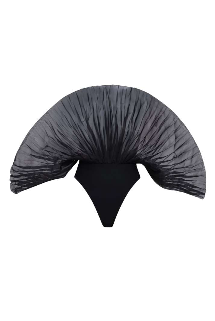 Black Sheer Tulle Top with 3D Floral Appliqués
