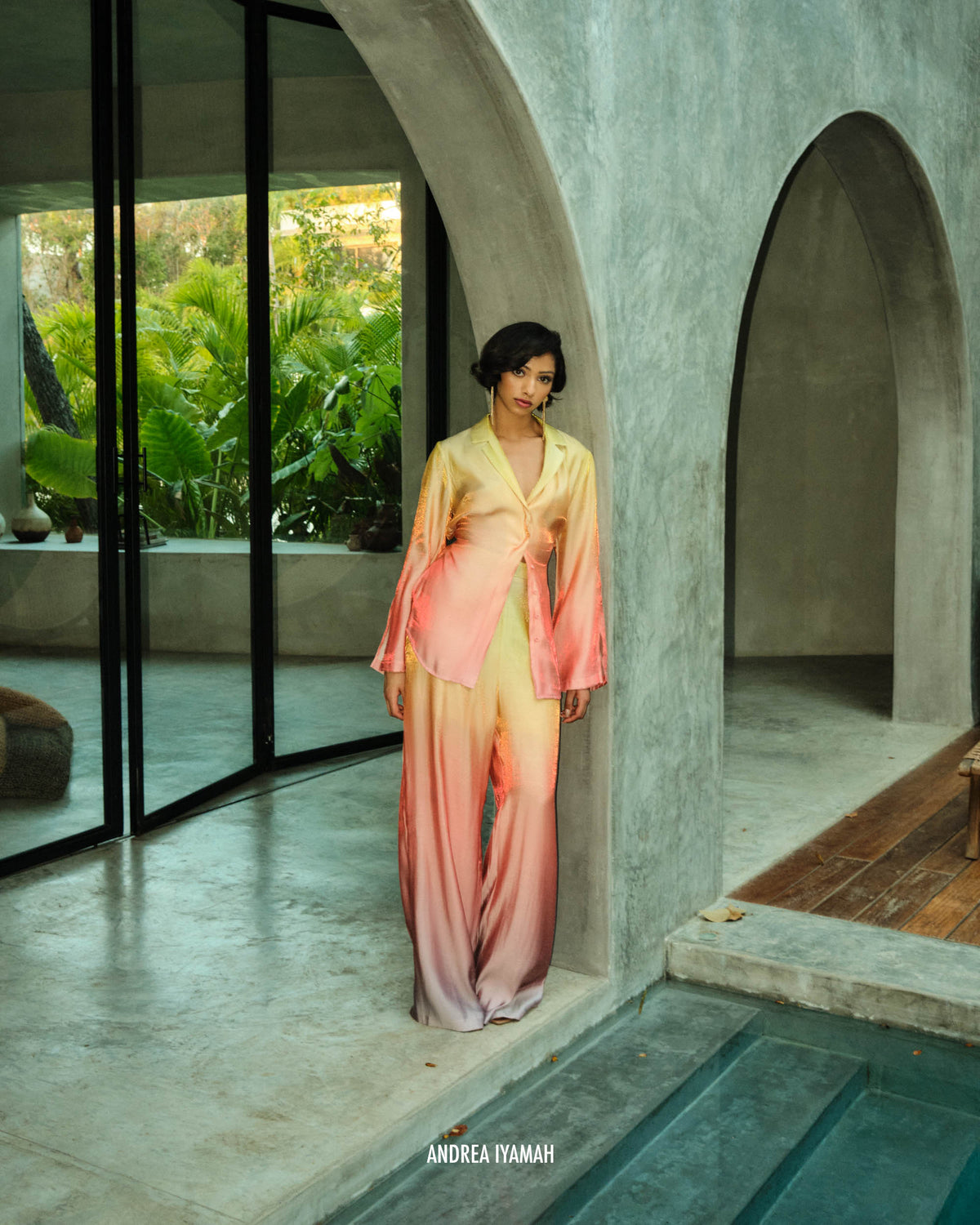 From casual outings to special occasions, the BATA Long Sleeve Top is a versatile wardrobe essential that effortlessly transitions from casual to dressy. Its subtle shimmery finish stems from the metallic threads which give it an iridescent finish in the signature ADWA PRINT. Pair its matching BATA PANTS to dress it up with the YURI SANDALS for a sophisticated evening ensemble or engage the side slits and knot the top in front to give it a casual finish with shorts and a pair of trainers or our POLA SLIPPERS.