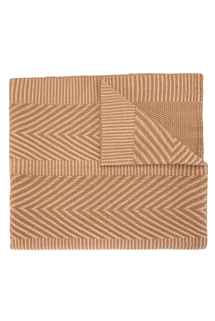 Hand-loomed shawl featuring graphic Chevron symbols, signifying wheat boughs and our connection to mother nature.