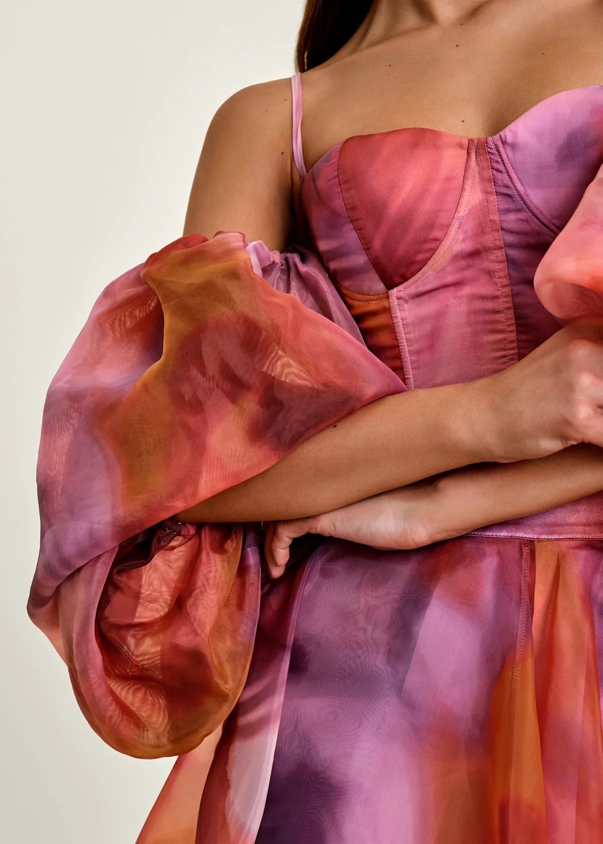 The KOKOS full flare high rise shorts feature our signature DANDI print. The printed organza fabric gives a soft bounce and flare to your walk. The shorts are lined with an opaque brown to give the illusion of sheerness but with all the coverage with nothing more to see. This DANDI printed organza...speechless!