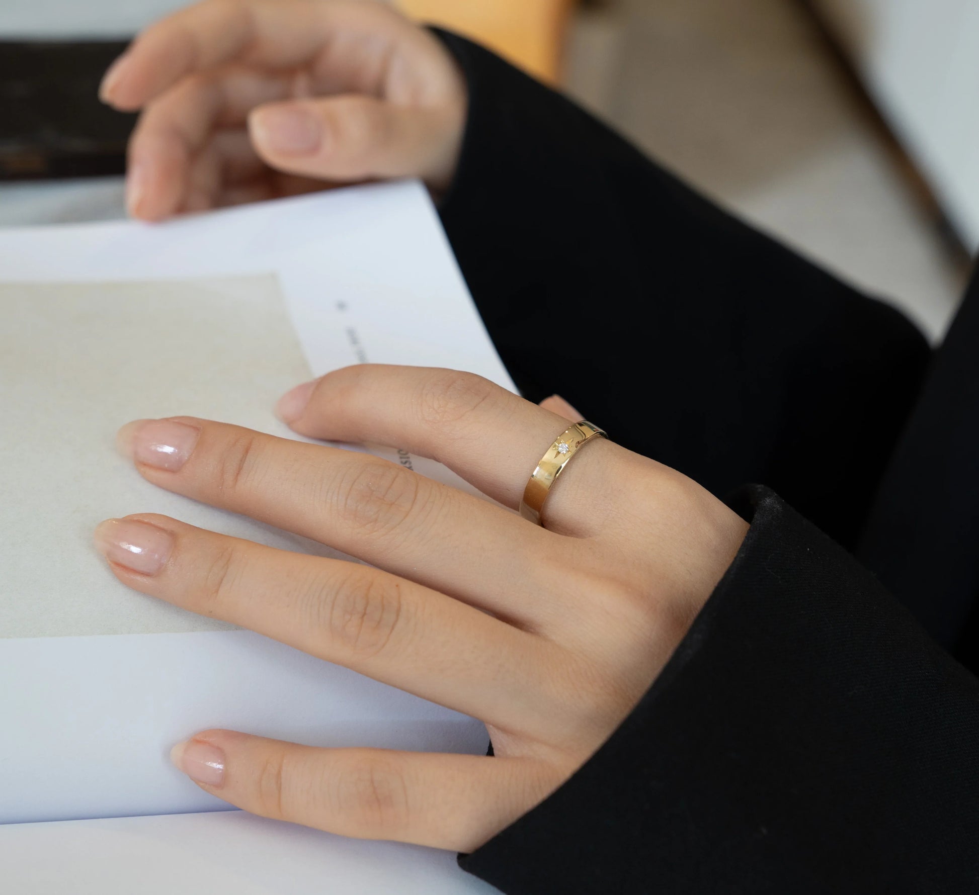 Celebrate unity and balance with our Sun and Moon Ring, a meaningful design crafted for modern symbolism and timeless style. This simple yet elegant band features a white diamond set in a traditional starburst engraving, paired with moon phases engraved inside the ring.