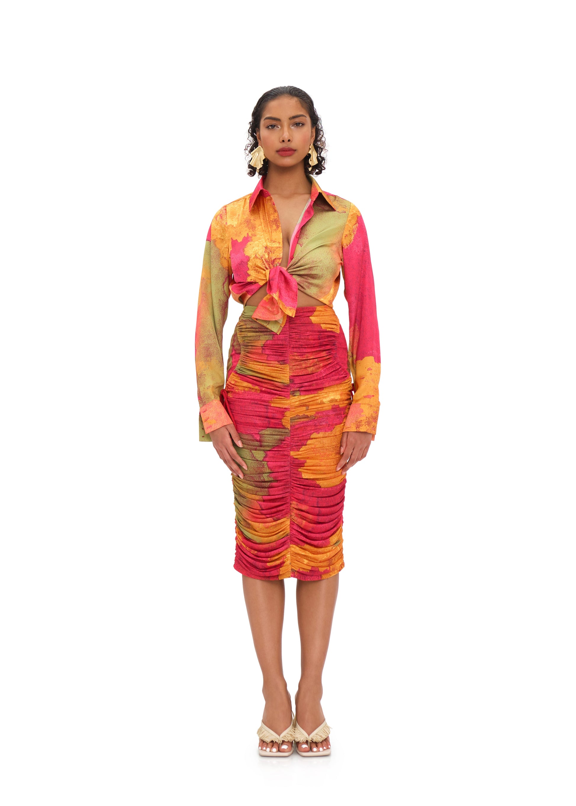 Inspired by the many layers of love, the TAKA MESH MIDI SKIRT in the ERO-II print beautifully hugs and accentuates the feminine figure. Can be paired with the PARA MESH LEOTARD OR THE ARA SHIRT for an all print look.